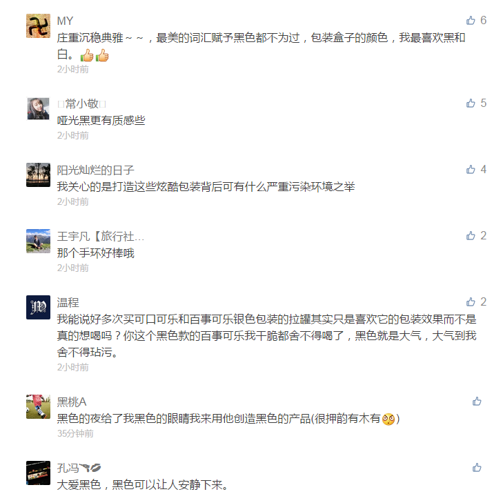 我們?nèi)粘I钪泻鹊降娘嬃习b一般都是紅色的(可口可樂(lè))、藍(lán)色的(百事可樂(lè))、黃色的(美年達(dá))等等,但就是很少見(jiàn)到有黑色的包裝,可以想象一下,如果你到冰柜里找飲料喝,在五彩繽紛的一眾“妖艷貨色”中獨(dú)獨(dú)有個(gè)黑色的“小公舉”,相信很多人會(huì)選擇那個(gè)與眾不同的吧。