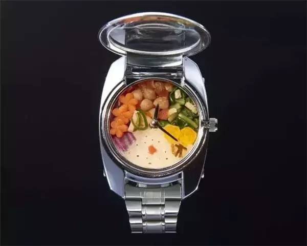 這款直徑30mm的手表便當(dāng),是世界上最小的手表便當(dāng)。雖然塞滿食物但并不影響手表的正常運(yùn)作,自帶可伸縮迷你筷子,開蓋即食。那么問題來了,那么精致的便當(dāng)能吃得飽嗎?