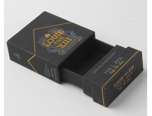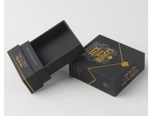 金色、白色的文字、圖案、線條互相交錯,本以為錯綜復(fù)雜的排版會讓版面變得異常的凌亂,但這個盒子卻沒有給人凌亂的感覺,驚不驚喜,意不意外?以黑色為底,白色和金色來點綴,看似凌亂的排版其實也是很有講究的,所以才沒有造成到處“撞車“的局面。抽屜式的設(shè)計讓盒子更有層次感,內(nèi)盒用和表面一樣的材料來裱,使表里如一,更顯專一。logo表面圖案使用印刷工藝,圖案清晰;精美的logo燙金工藝使品牌logo更加的醒目有質(zhì)感。