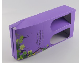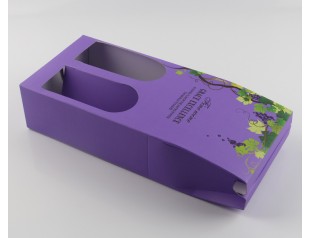雙支酒包裝盒,采用大氣的葡萄圖案,高貴的紫色,凸顯酒的品質(zhì)。在駿業(yè)包裝廠定做的可折疊酒盒,開窗的設(shè)計(jì),讓客戶一眼就可目睹高貴的紅酒。此紅酒禮品盒內(nèi)采用兩格規(guī)定的形式,保證了產(chǎn)品的安全。