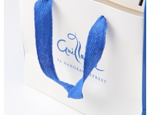 這款t恤紙袋的袋身給人方正大氣,但又不缺少流線圓潤的元素,藍、白相間的顏色搭配給人渾然一體的感覺。t恤本來就給人以一種青春活力之感,用來包裝它的t恤紙袋當然也要是青春靚麗的啦,而藍色和白色就是活力慢慢的顏色。紙袋的文字logo設計讓它有了一絲調皮感。簡約的設計使得t恤紙袋就像個超凡脫俗的精靈,大氣又不失清新,客人見到無不駐足欣賞。