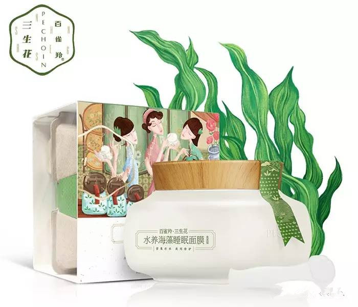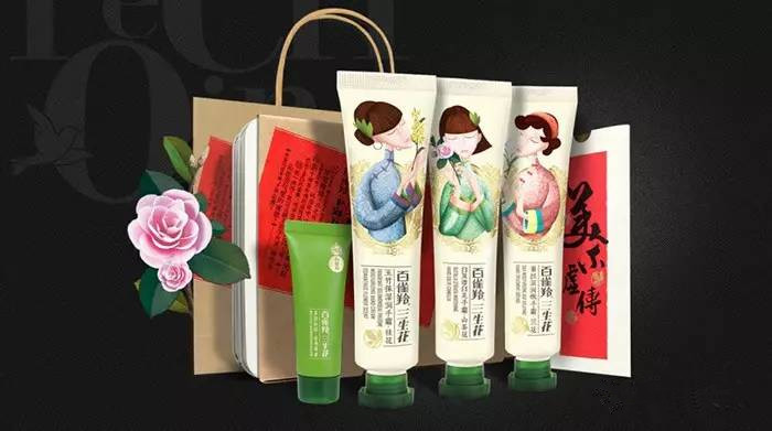 2012年,百雀羚旗下還有一款名為“百雀羚·三生花”的子品牌,延續(xù)了品牌一貫“東方美學”的理念,化妝品包裝上的三個插畫形象分別代表了三種珍貴的護膚草本植物:三色堇、山茶花、金釵石斛。畫面里是貓咪一樣迷之傲嬌+優(yōu)雅的美人。想當初小編開始用面膜,在購買面膜的時候就是因為看上了百雀羚的這化妝品盒才成為了它的粉,當然,現(xiàn)在也還在用。