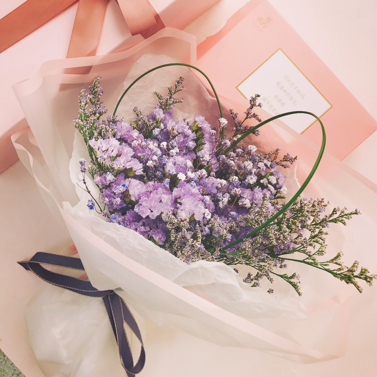 如上圖,小編的這束花的特別之處在于在束花里加了鋼絲草,做成了愛(ài)心的造型。在這個(gè)表達(dá)愛(ài)意的節(jié)日里,當(dāng)然要無(wú)處不在的比心心以表誠(chéng)意啊~