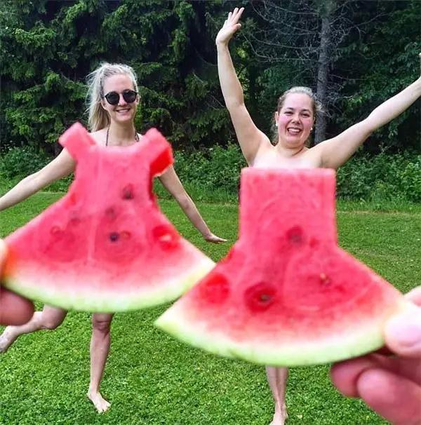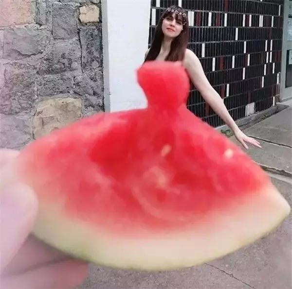 將西瓜切成裙子的形狀,利用巧妙的角度拍攝穿著西瓜裙的照片,看上去涼爽指數五顆星。嗯,吃個西瓜還要那么有藝術感,這才是生活?。∪绻伦约旱漠嫯嫻αΣ粔?,那沒關系,你可以學下面的這些玩法,簡單粗暴。