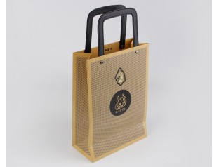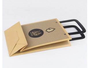 此款紙袋制作采用特種紙,商標(biāo)燙金,加上PU皮手提繩。手提袋設(shè)計(jì)的手提處選用了黑色PU皮,高檔紙袋手提繩打雞眼,提高了手提紙袋的承受力。廣州駿業(yè)紙袋廠家,專業(yè)16年印刷包裝行業(yè),免費(fèi)設(shè)計(jì),量身定制,想了解更多手提紙袋,歡迎致電:020-66677799