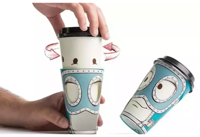 有趣的產(chǎn)品包裝設(shè)計,可以為消費者在產(chǎn)品使用之前或使用的過程中,增加一些互動體驗。這一招很奏效,能直接為消費者的產(chǎn)品體驗加分。比如亞美尼亞的設(shè)計工作室 Backbone Branding,為當?shù)氐?Gawatt 餐廳設(shè)計的這款咖啡杯。盡管乍一眼看上去非常普通,但是當你轉(zhuǎn)動杯蓋的時候,杯身上卡通人物的表情就會開始變化。設(shè)計師在每個杯子上都內(nèi)設(shè)了三款表情,消費者可以轉(zhuǎn)動杯子本身或者外層的杯套,來改變卡通人物的表情。來這樣一杯咖啡小編可以玩上一天!