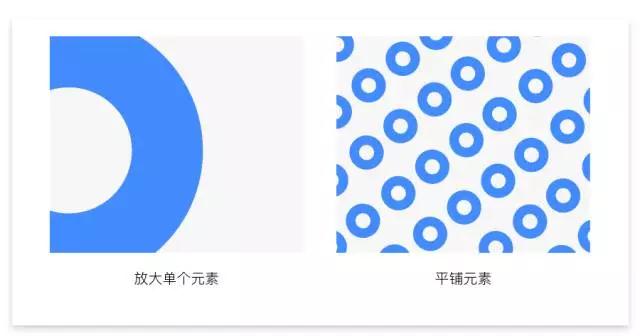 但是在做延展的時候遇到了問題,由于自己的“平面構(gòu)成”水平一般,所以一直以來對于圖形延展都很抗拒,自己常用的延展方式要么是放大單個元素,要么是平鋪元素,如下圖: