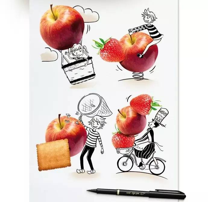 水果與漫畫的完美結合,充滿幸福和朝氣的畫風,毫無違和感,簡直神配。這種水果包裝設計我就算不吃水果我也要買,因為我要看漫畫啊~