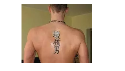 還有這一位Bad Boy,酷到衣服都不穿直接文身,可是親,你這個(gè)語(yǔ)序,已經(jīng)酷到深處自然萌了,更別提那描紅一般的正楷字體, 真是不能更正經(jīng)。