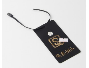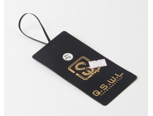 此款商標(biāo)吊牌廠家選用黑卡紙,商標(biāo)燙金,黑卡紙是特種紙的一種,其表面平整光滑,挺度好,拉力好,耐破度高此款吊牌設(shè)計(jì)選用了黑色作為主體色,搭配醒目燙金的LOGO,更彰顯其品牌價(jià)值吊牌設(shè)計(jì)采用了經(jīng)典的黑色和金色配合,沉靜的黑色能隱去燥熱,璀璨的金色能喚起您喜悅的心情
