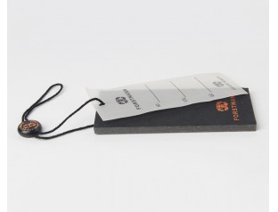 吊牌設(shè)計整體選用了黑色作為主元素,醒目燙銀的LOGO和黑色搭配,更彰顯其品牌價值。