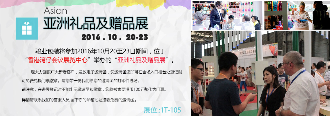亞太區(qū)內其中一項舉足輕重的超大型貿易展會-亞洲禮品及贈品展將于2016年10月20至23日香港灣仔國際會議展覽中心隆重舉行,屆時廣州駿業(yè)包裝盒制作廠家將盛裝亮相。